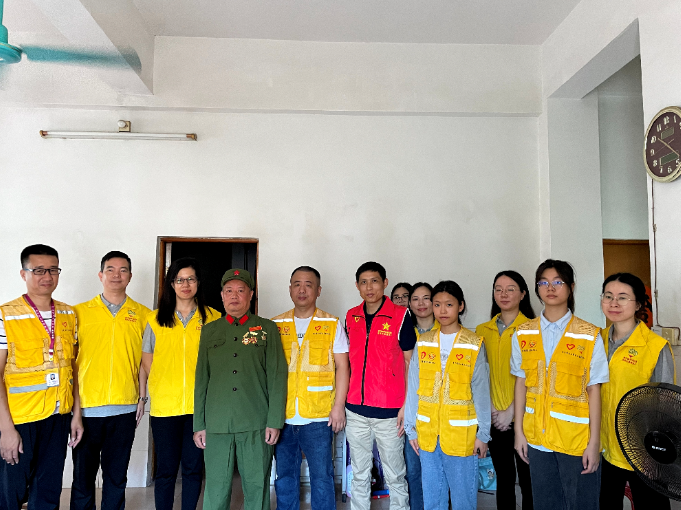 當(dāng)天上午,大家分成兩隊(duì),帶上慰問品前往老兵住處,與老兵們親切交談,了解他們的生活和健康狀況,傾聽他們?cè)谂诨鹣鯚熤械膽?zhàn)斗故事,追憶軍旅生涯,感悟紅色精神。走訪過程中,一名身穿綠軍裝的老兵,激動(dòng)講述當(dāng)年對(duì)越自衛(wèi)反擊戰(zhàn)的經(jīng)歷,雖一次次與死神擦肩而過,但終因手榴彈襲擊,導(dǎo)致耳朵永久失聰??粗媳鴪?jiān)定的眼神和珍藏的榮譽(yù)勛章,時(shí)至今日,我們依然能震撼地感受到其保家衛(wèi)國的熱血情懷和不畏勁敵的英勇精神。最后,老兵們對(duì)大家的來訪深表感動(dòng),并希望自己能繼續(xù)發(fā)揮余熱,為國家和政府事業(yè)貢獻(xiàn)力量。