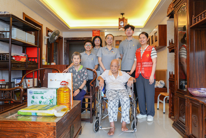 8月18日上午,佛山公司黨支部、工會和職工代表共10人帶上慰問品早早地到達了約定地點,在尖東社區(qū)工作人員帶領下分組前往獨居老人家中進行慰問。此次慰問獨居長者活動,總共拜訪了5戶家庭,他們都居住在金域南灣小區(qū),且身體狀況較差,有些長者還身患疾病,生活勉強能夠自理。
