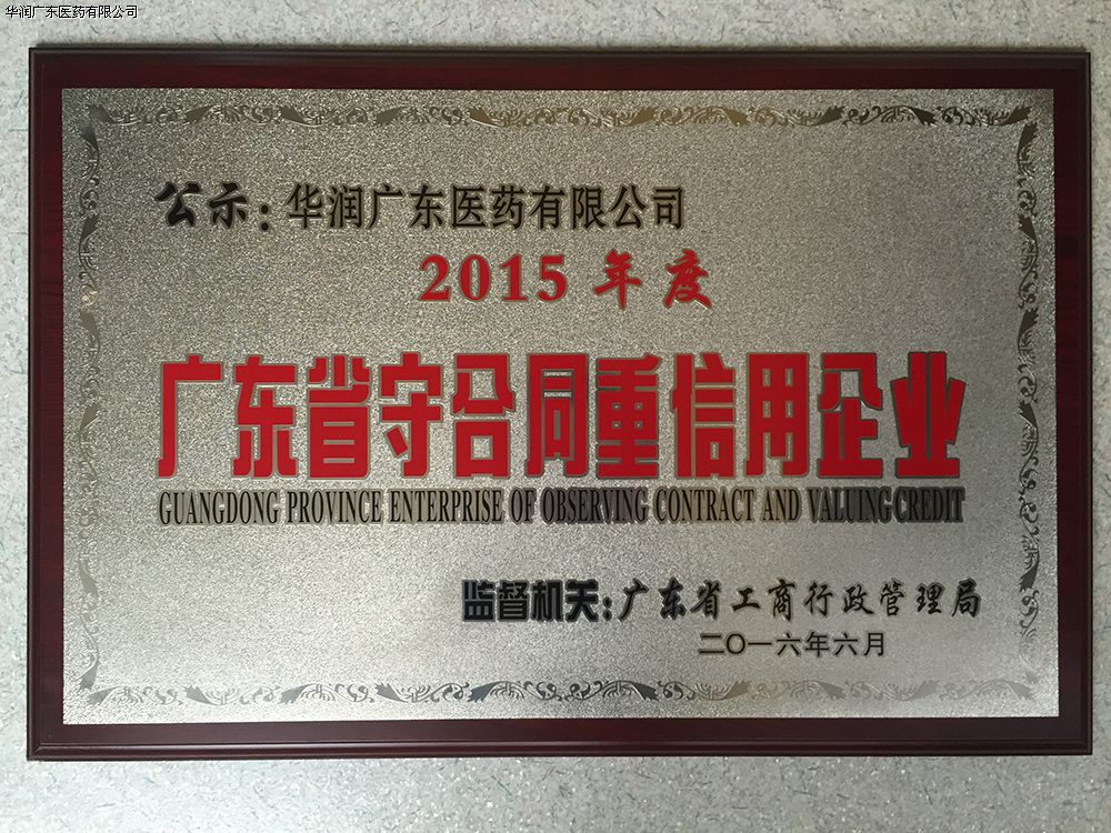 華潤(rùn)廣東醫(yī)藥榮獲“2015年度廣東省守合同重信用企業(yè)”稱號(hào)