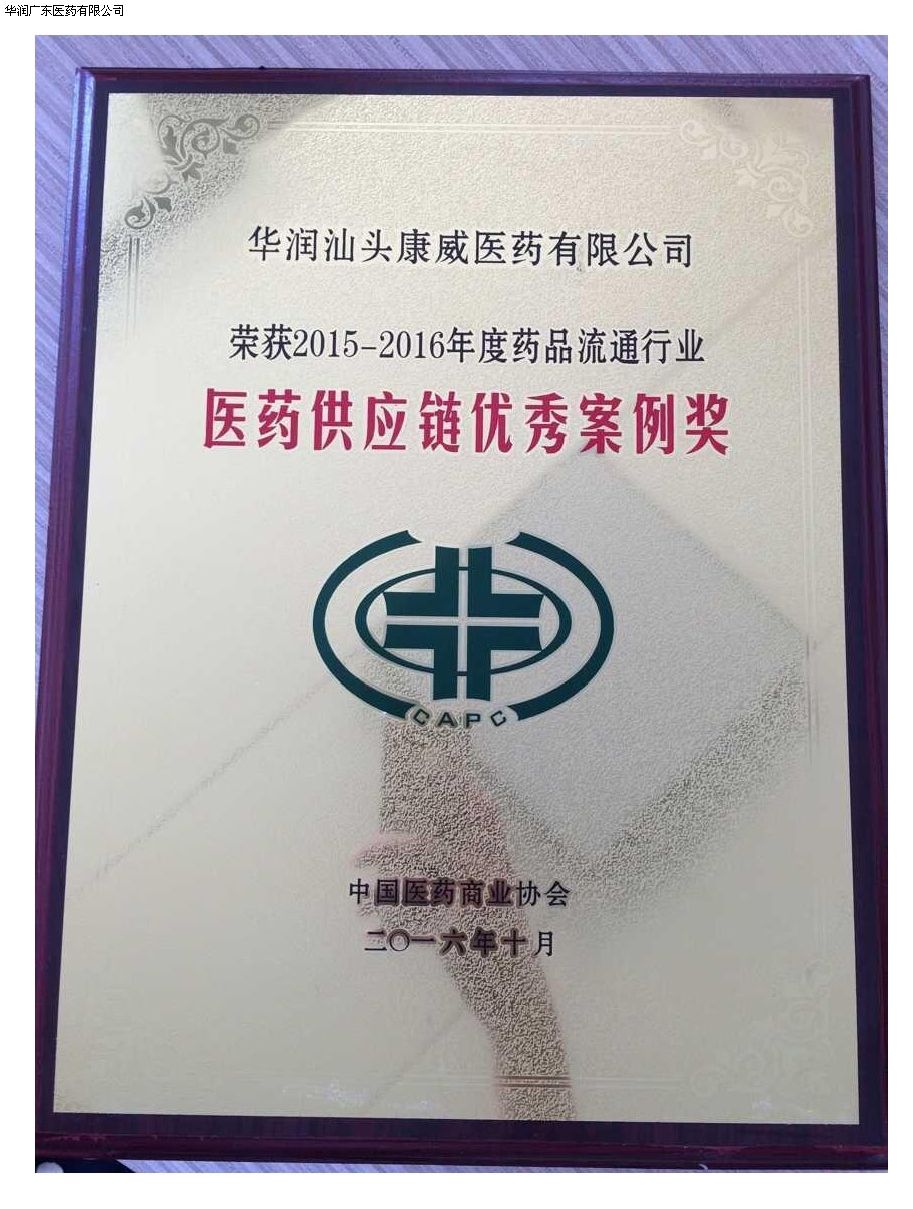 2016年10月,華潤(rùn)廣東醫(yī)藥有限公司申報(bào)的“廣東云醫(yī)院項(xiàng)目”、“廣東省人民醫(yī)院藥品物流智能一體化項(xiàng)目”、“中山大學(xué)附屬第一醫(yī)院藥品物流智能一體化項(xiàng)目”、華潤(rùn)廣東醫(yī)藥子公司華潤(rùn)汕頭康威醫(yī)藥有限公司申報(bào)的“汕頭市中心醫(yī)院、汕頭大學(xué)第二附屬醫(yī)院藥品物流智能一體化項(xiàng)目”在中國(guó)醫(yī)藥商業(yè)協(xié)會(huì)醫(yī)藥供應(yīng)鏈分會(huì)關(guān)于2015-2016年度醫(yī)藥供應(yīng)鏈優(yōu)秀案例征集評(píng)選活動(dòng)中脫穎而出,分別榮獲兩項(xiàng)醫(yī)藥供應(yīng)鏈服務(wù)創(chuàng)新獎(jiǎng)和一項(xiàng)醫(yī)藥供應(yīng)鏈優(yōu)秀案例獎(jiǎng)。本次評(píng)選活動(dòng)由中國(guó)醫(yī)藥商業(yè)協(xié)會(huì)主辦,經(jīng)醫(yī)藥供應(yīng)鏈專家?guī)鞂<掖碓u(píng)審、協(xié)會(huì)官網(wǎng)及協(xié)會(huì)、分會(huì)微信公眾平臺(tái)公示等程序,最終確認(rèn)獲獎(jiǎng)名單。
