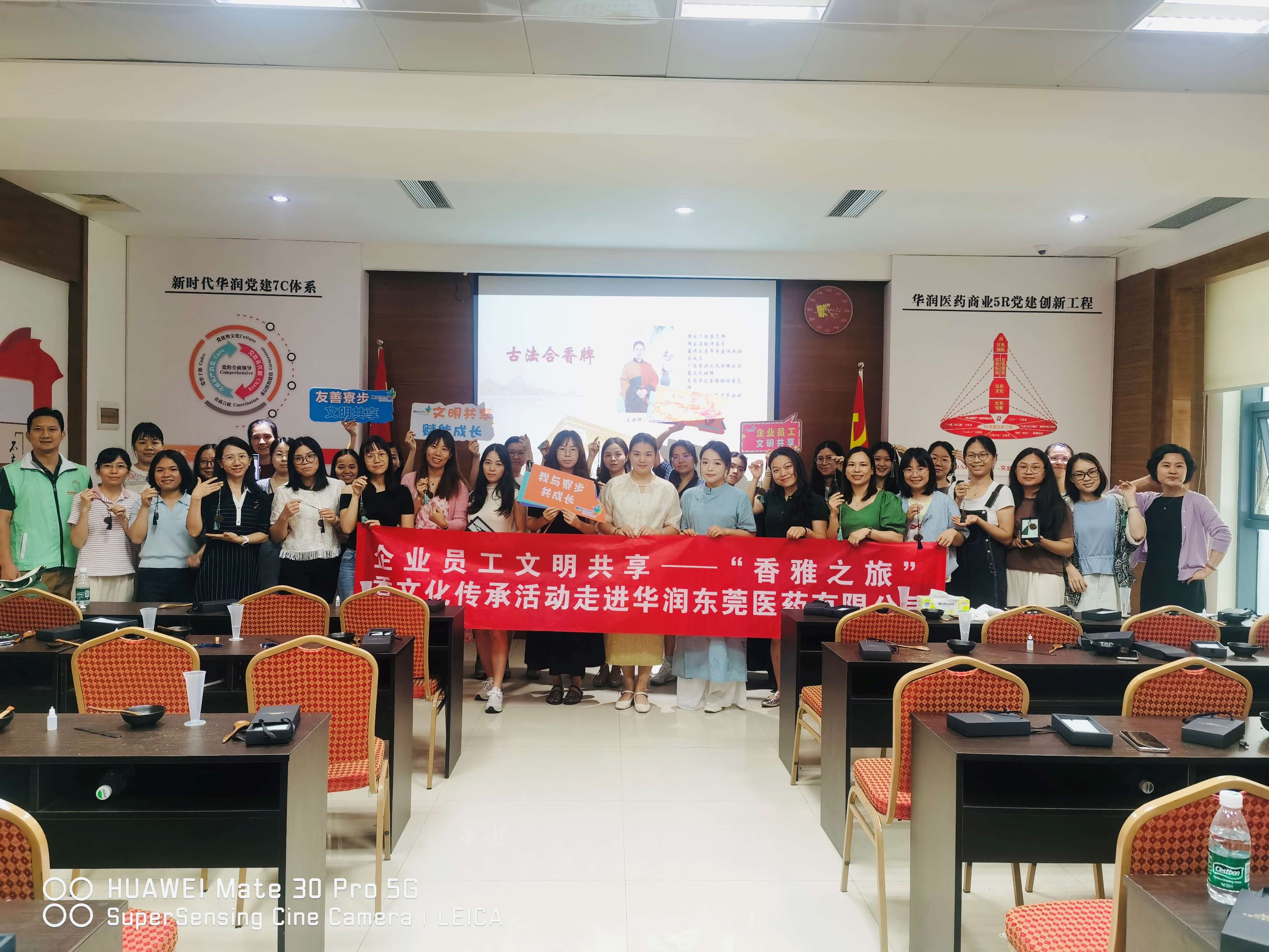 6月18日,東莞市寮步鎮(zhèn)宣傳教育辦公室(宣教辦)、東莞市沉香博物館聯(lián)合走進(jìn)華潤東莞醫(yī)藥有限公司(以下簡稱“公司”),舉辦“香雅之旅,沉香文化走進(jìn)企業(yè)”活動,公司女員工積極參與。