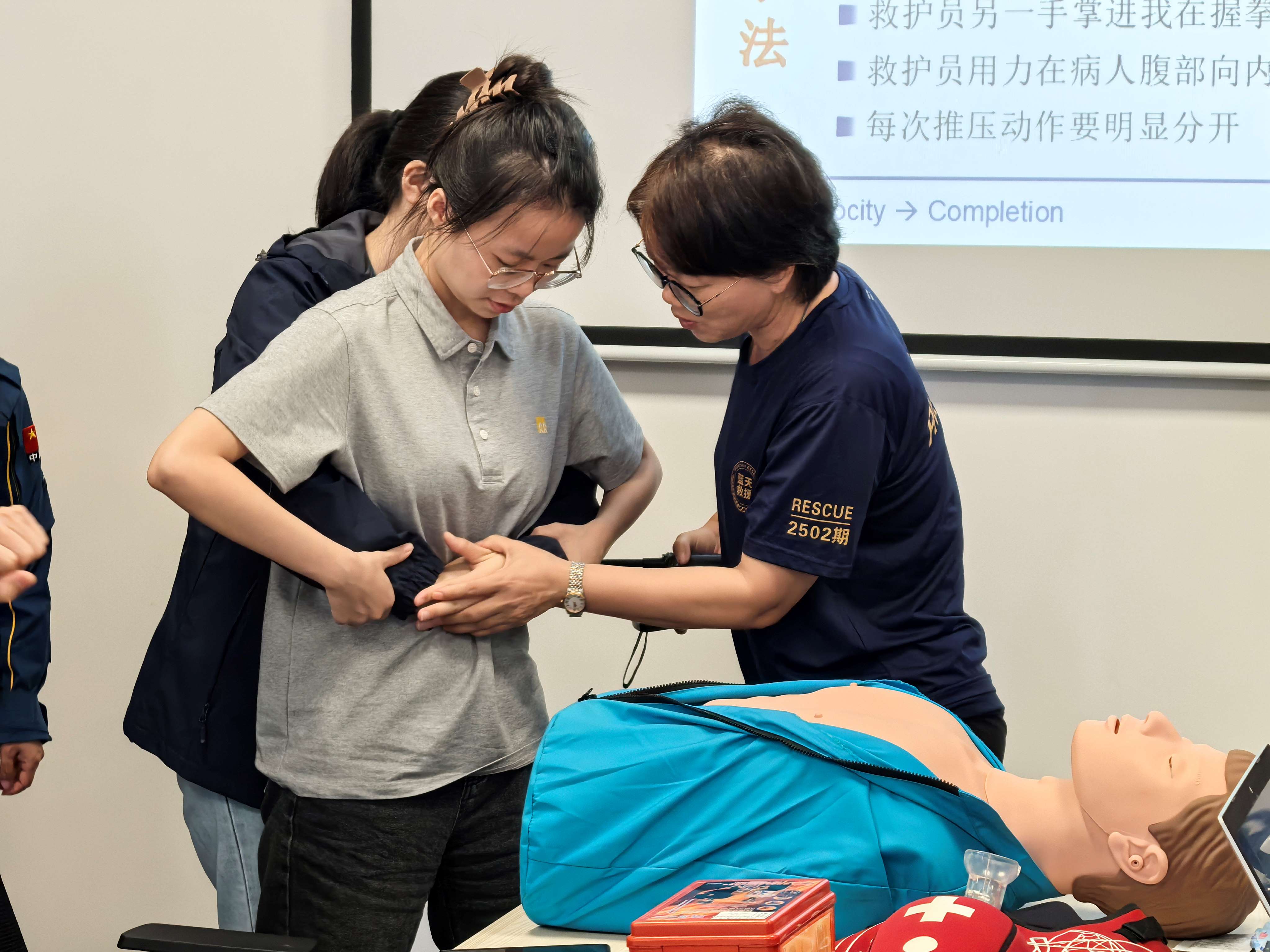 活動(dòng)伊始,湛江市藍(lán)天救援隊(duì)的專(zhuān)業(yè)講師毛成通過(guò)專(zhuān)業(yè)知識(shí)講授、實(shí)際案例分析等形式,圍繞火災(zāi)逃生、心肺復(fù)蘇、海姆立克急救法等重要主題展開(kāi)培訓(xùn)。大家在現(xiàn)場(chǎng)實(shí)操練習(xí)徒手心肺復(fù)蘇操作及海姆立克急救法。