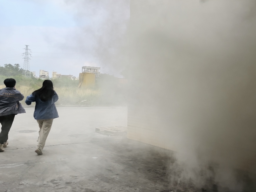 在疏散小組的指揮下,全體員工迅速、有序地撤離到倉庫外物流園一樓的空地上。整個疏散過程緊張有序,達(dá)到了預(yù)期效果。在實(shí)操技能體驗(yàn)環(huán)節(jié),采用了互動式體驗(yàn)的方式,由質(zhì)量部介紹滅火器的種類、適用范圍和正確使用方法以及消防面罩的結(jié)構(gòu)、功能及佩戴方法。員工們輪流操作干粉滅火器,成功撲滅模擬火源,確保每位職工都能掌握基礎(chǔ)消防器材的使用技巧。