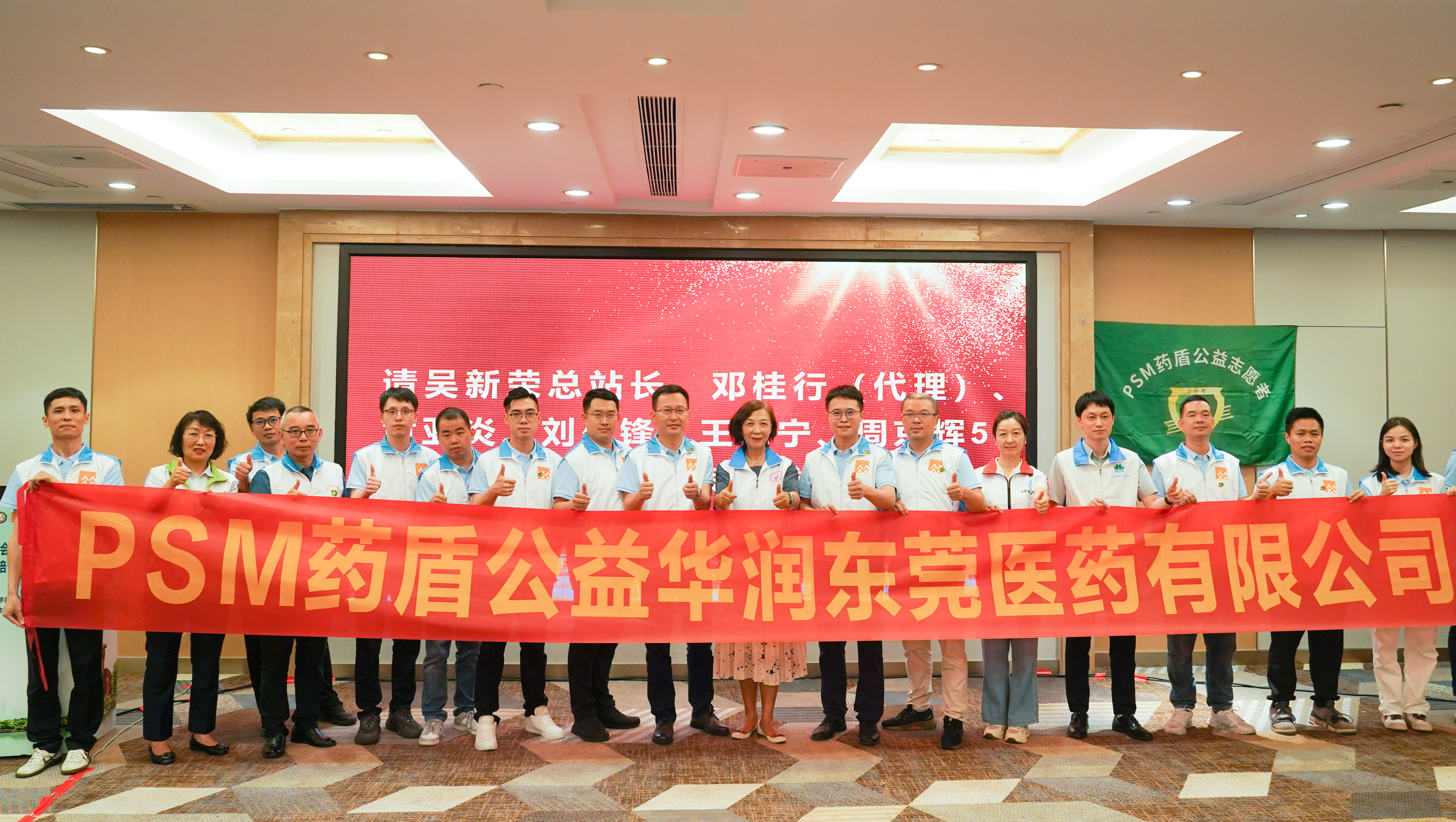 隨后,PSM廣東總站吳新榮總站長為華潤東莞醫(yī)藥劉先鋒總經(jīng)理授旗,與會專家學(xué)者為志愿者頒發(fā)徽章并帶領(lǐng)全體志愿者宣讀誓詞。