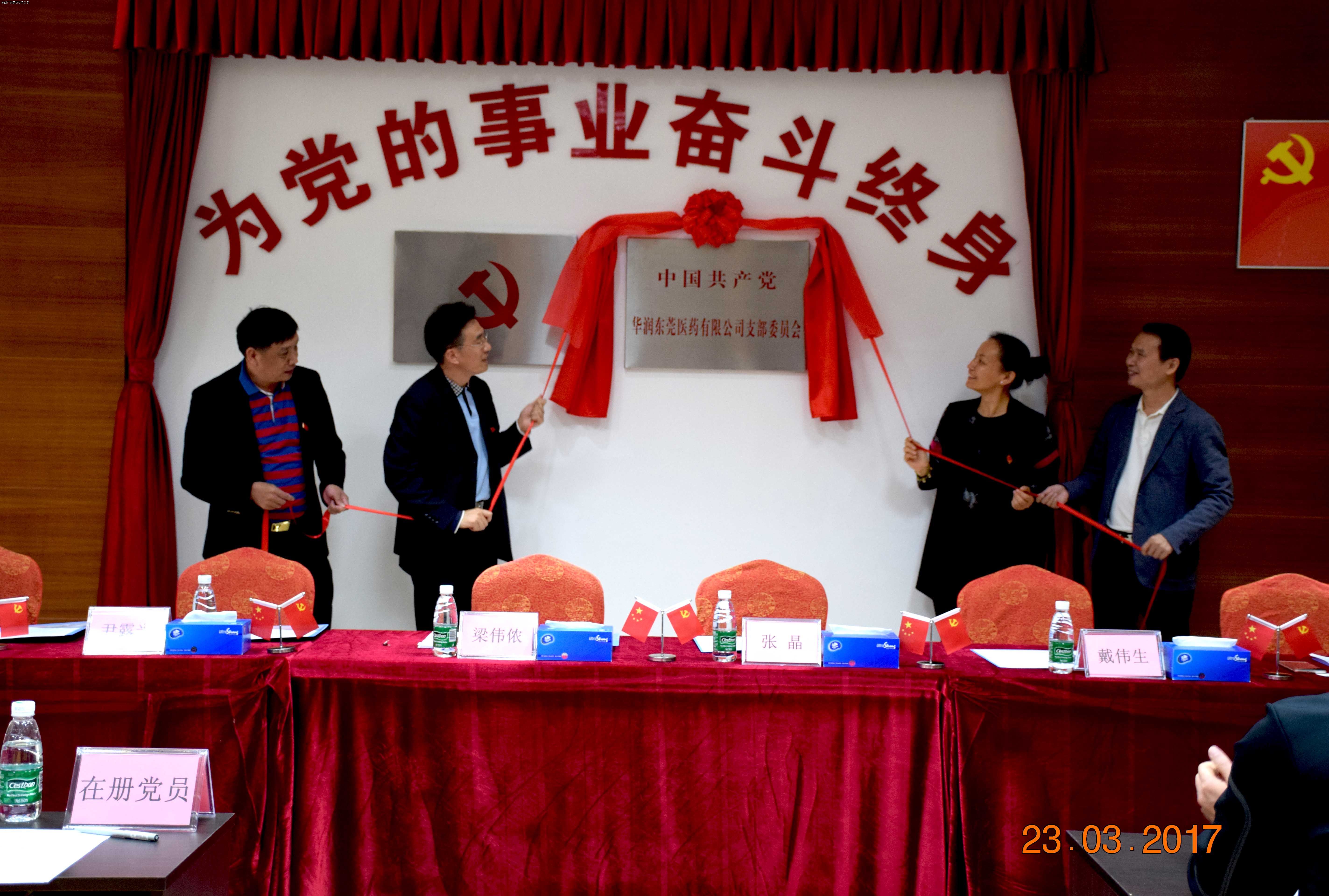 2017年3月23日上午,華潤(rùn)東莞醫(yī)藥有限公司(以下簡(jiǎn)稱“華潤(rùn)東莞醫(yī)藥”)在黨員活動(dòng)室舉辦黨支部揭牌儀式并召開黨員選舉大會(huì)。寮步鎮(zhèn)鎮(zhèn)委委員梁偉儂、寮步鎮(zhèn)西溪村黨工委書記尹露光、寮步鎮(zhèn)社會(huì)組織工委副書記鄺紹坤、華潤(rùn)廣東醫(yī)藥有限公司紀(jì)檢委員張晶、華潤(rùn)東莞醫(yī)藥總經(jīng)理戴偉生等領(lǐng)導(dǎo)共同出席活動(dòng)。本次活動(dòng)由華潤(rùn)東莞醫(yī)藥顏加進(jìn)同志主持,公司全體黨員及公司全體中、高層管理人員,華潤(rùn)廣東醫(yī)藥黨務(wù)工作者作為列席嘉賓出席本次活動(dòng)。