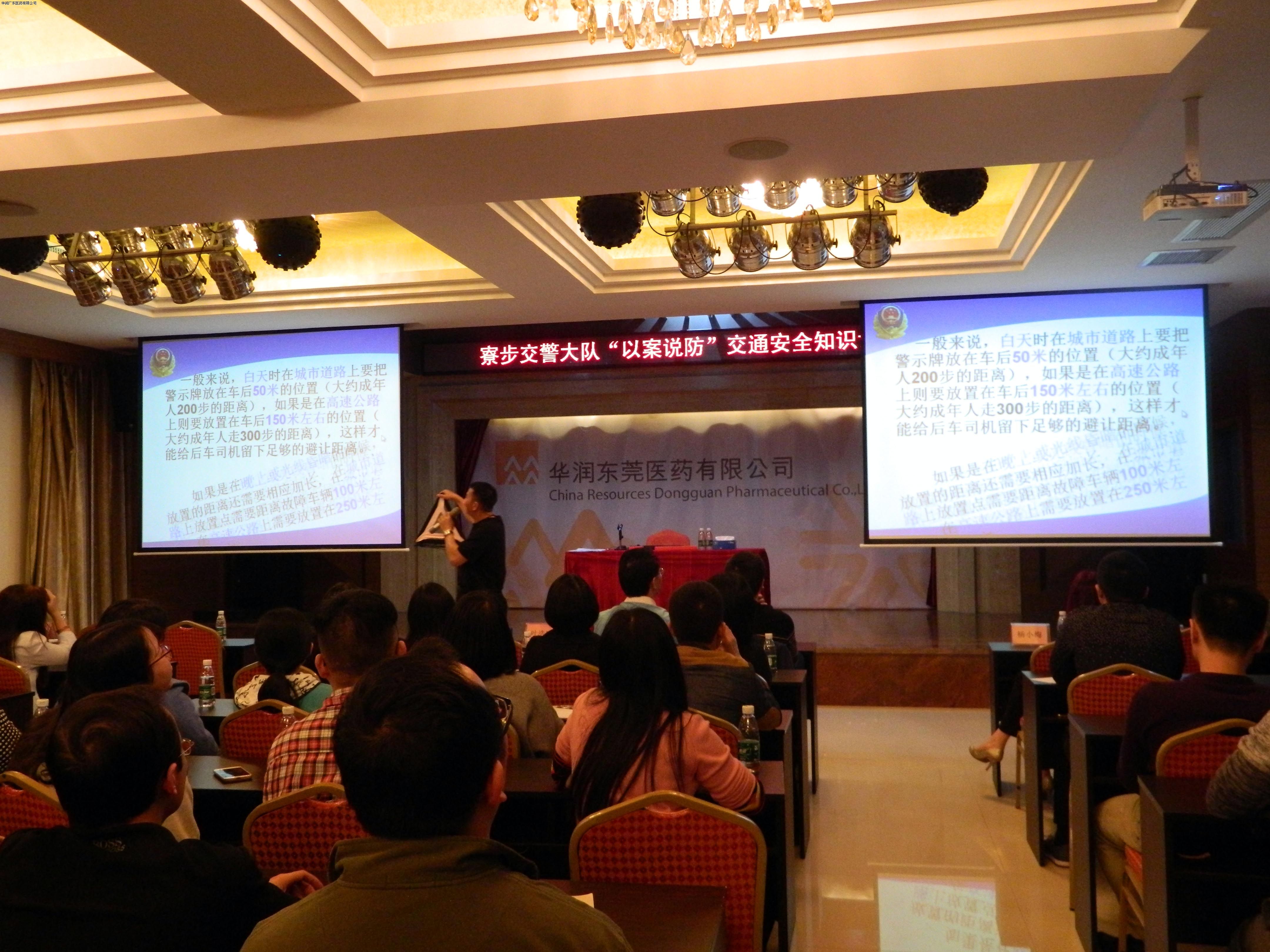 為進一步普及交通安全知識,增強員工的交通安全意識,倡導(dǎo)文明交通理念,華潤東莞醫(yī)藥有限公司在3月28日組織全體員工開展“以案說防”交通安全知識講座。本次講座由寮步交警大隊宣傳交警鄺柱平同志擔(dān)任主講嘉賓,寮步交警大隊副大隊長葉浩球同志作為嘉賓出席講座。