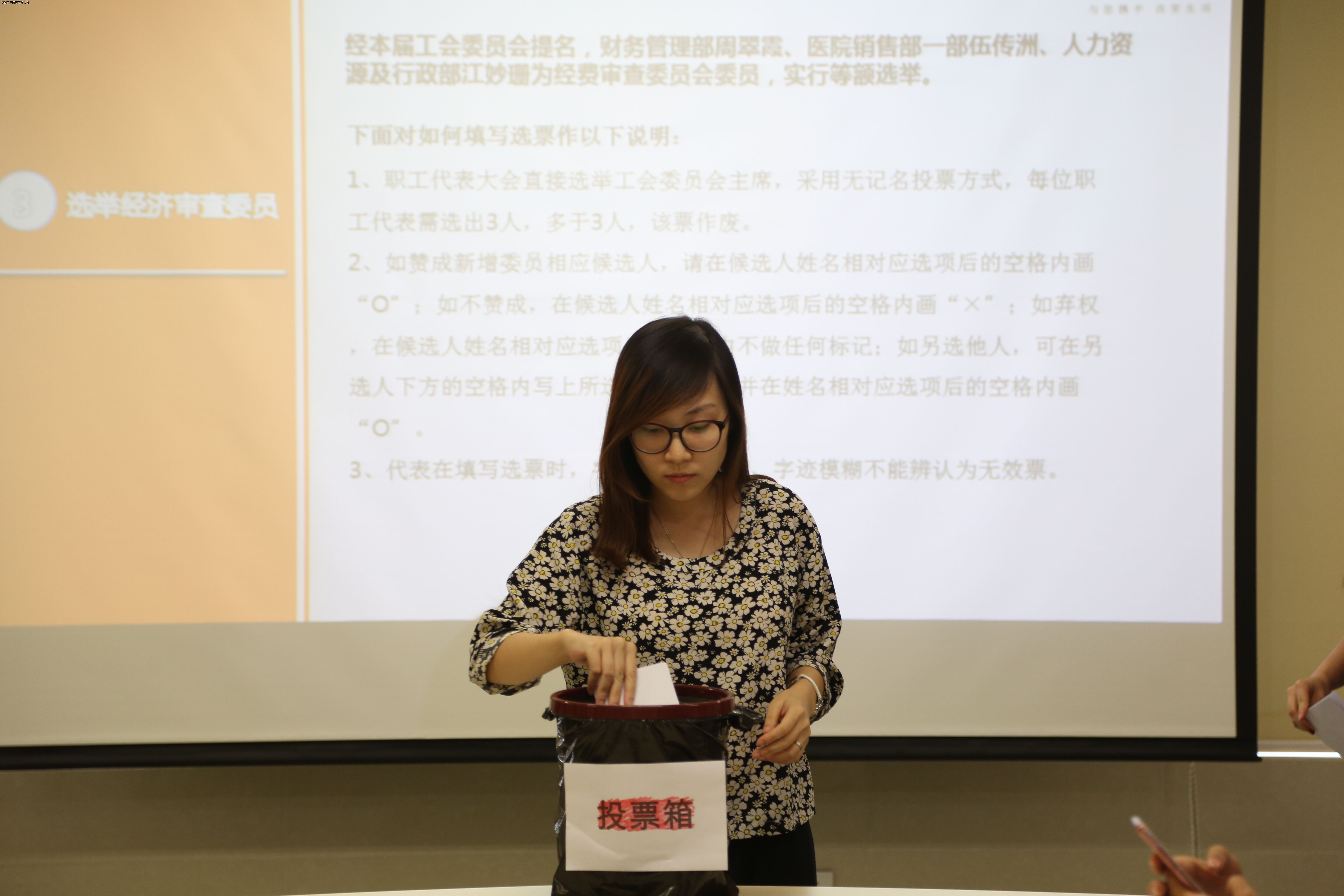 會(huì)議審議通過(guò)了華潤(rùn)廣東醫(yī)藥有限公司工會(huì)第二屆工會(huì)委員會(huì)工作報(bào)告、經(jīng)費(fèi)收支情況報(bào)告和經(jīng)費(fèi)審查委員會(huì)工作報(bào)告。選舉產(chǎn)生了由14名委員組成的新一屆工會(huì)委員會(huì),唐敏同志當(dāng)選為新一屆工會(huì)主席。會(huì)議同時(shí)選舉出工會(huì)經(jīng)費(fèi)審查委員會(huì)和女職工委員會(huì)主任。
