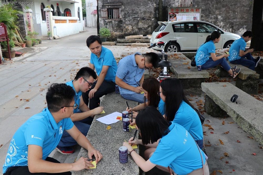 午飯過(guò)后,大家在孫氏大宗祠門前的小廣場(chǎng)集合進(jìn)行第二場(chǎng)主題——“不忘初心、牢記使命--守初心、擔(dān)使命、找差距、抓落實(shí)”頭腦風(fēng)暴活動(dòng)。通過(guò)事前調(diào)研,黨支部總結(jié)出實(shí)際工作中突出的幾個(gè)問(wèn)題:如何提升黨支部的凝聚力、如何快速提升新員工的融入感、如何提高應(yīng)收賬款回款率、何如降低壞賬風(fēng)險(xiǎn)等?,F(xiàn)場(chǎng)30名組員分成四個(gè)小組,每組設(shè)一組長(zhǎng),由組長(zhǎng)組織組員就上述問(wèn)題進(jìn)行頭腦風(fēng)暴。組長(zhǎng)再將大家討論成果匯總,輪流分享。
