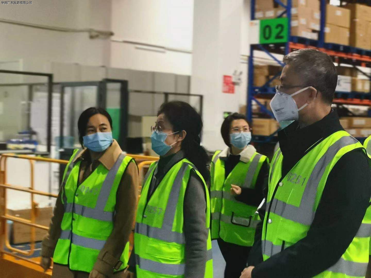 1月29日(正月初五),廣東省藥品監(jiān)管局領(lǐng)導一行四人到華潤廣東醫(yī)藥有限公司花都物流中心現(xiàn)場了解疫情應急藥械產(chǎn)品的質(zhì)量管理和儲備情況,并對奮戰(zhàn)在抗擊疫情一線的華潤廣東員工表示慰問和感謝。公司常務副總經(jīng)理霍佩瓊與環(huán)境健康安全與質(zhì)量管理部、物流管理部部分員工陪同。