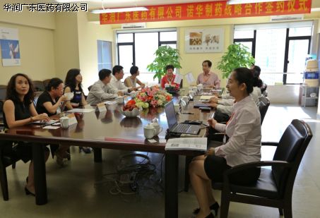 2013年6月27日下午,我司與諾華制藥有限公司在大會(huì)議室舉行了隆重的合作簽約儀式。諾華制藥中國副總裁邊建蘋女士、華潤廣東醫(yī)藥總經(jīng)理陳威廉先生以及雙方公司代表共20人出席了當(dāng)天的簽約儀式。諾華制藥廣州公司商務(wù)負(fù)責(zé)人曾秀明主持了本次簽約儀式。