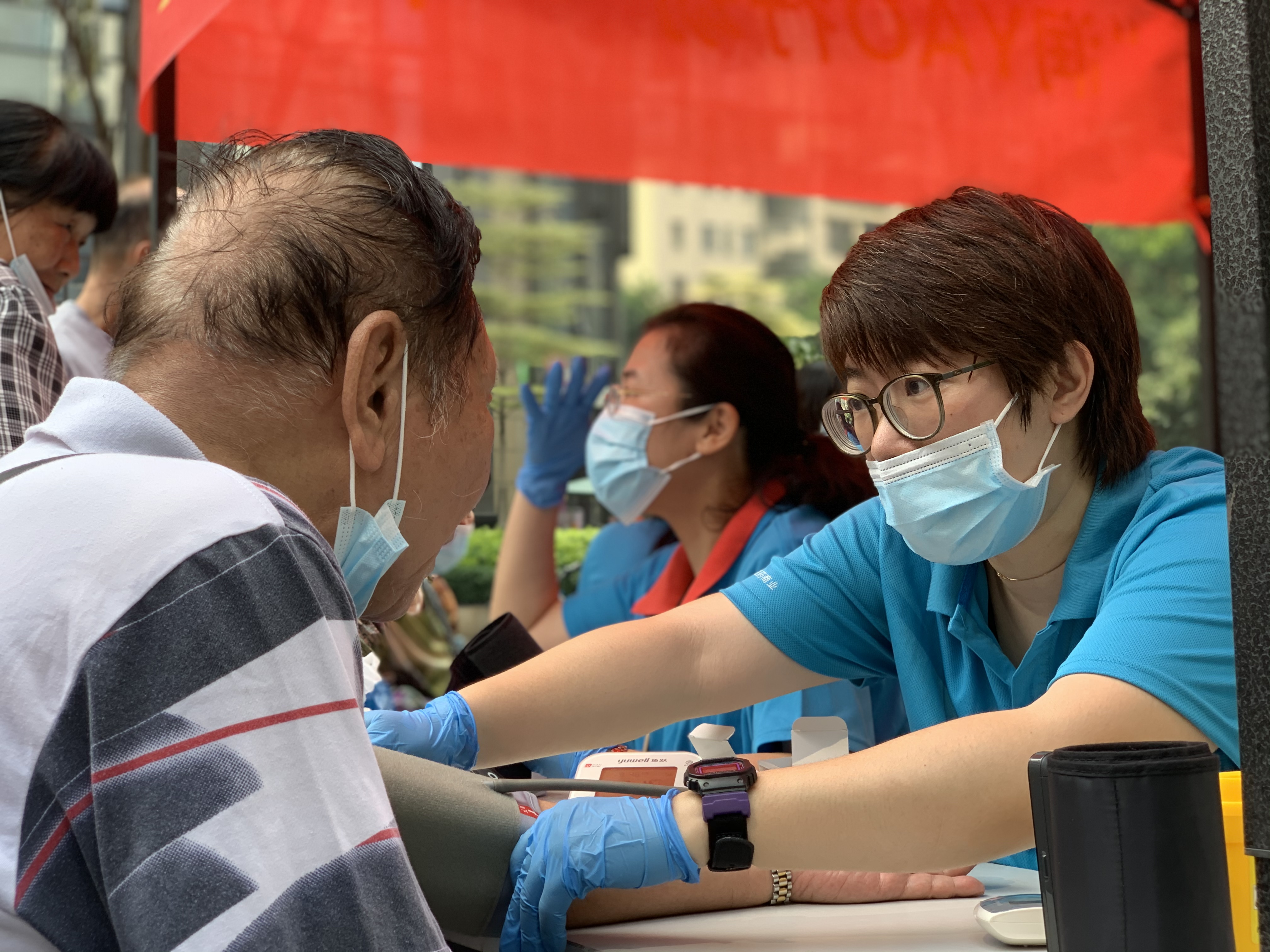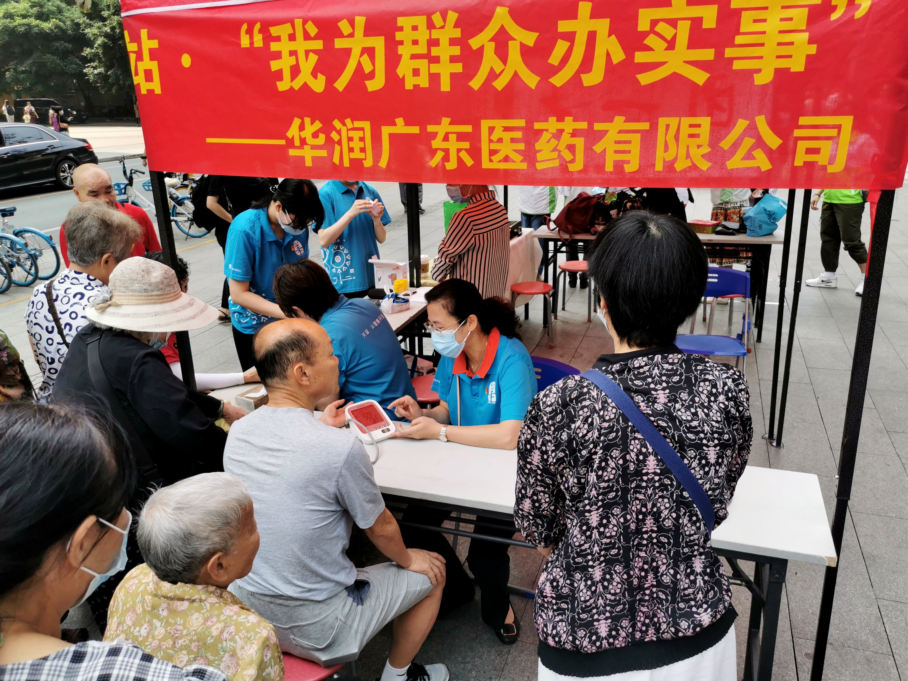 此次活動(dòng),志愿者們?yōu)槿罕姕?zhǔn)備了測(cè)血糖、量血壓的項(xiàng)目,以及為群眾提供慢性病咨詢?!安?,你血壓有點(diǎn)高,你記得注意下飲食呀,不要吃高脂肪的食物,要忌口。”青年黨員羅曉媚看了看血壓儀,和氣地向老先生勸導(dǎo)?;顒?dòng)期間,前來(lái)參與活動(dòng)的群眾絡(luò)繹不絕。華潤(rùn)廣東醫(yī)藥與廣州德信行大藥房黨員志愿者們?yōu)椴还钾?fù)群眾的期望,不讓群眾白跑一趟,攤位活動(dòng)一直維持到11點(diǎn)45分才正式收攤。