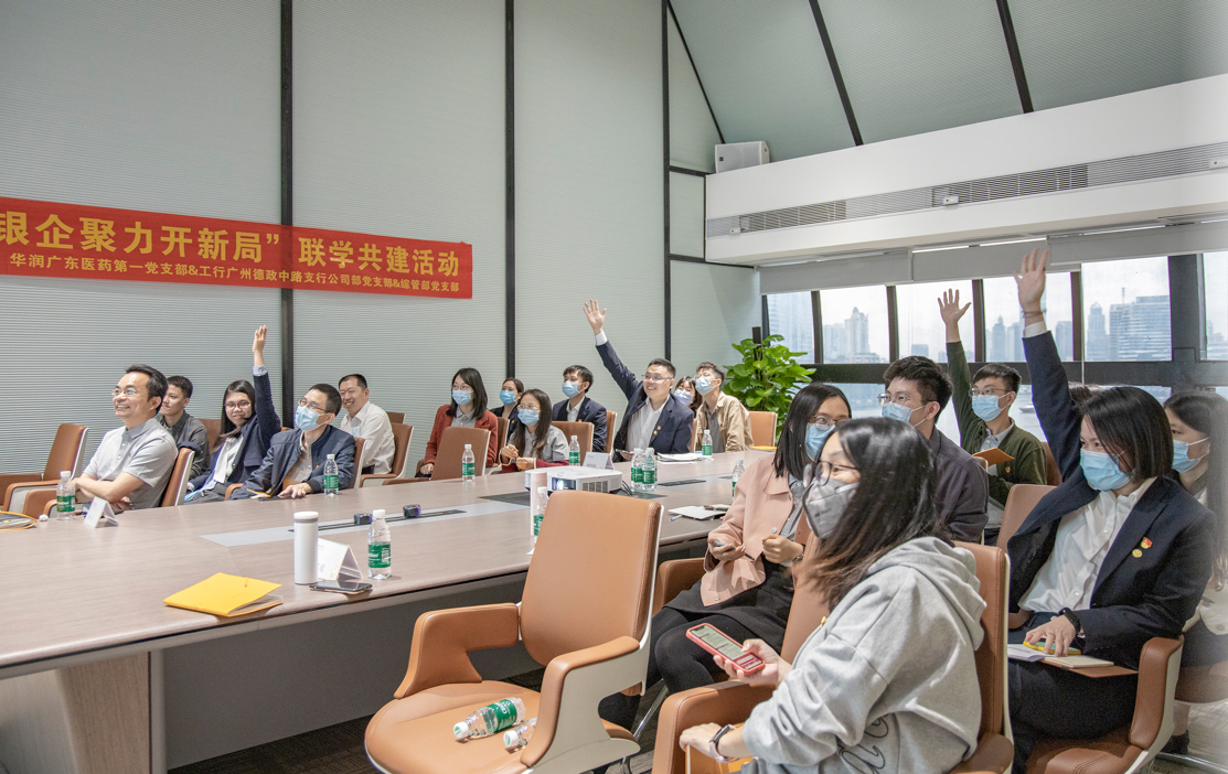 為扎實開展黨史學習教育,激發(fā)基層黨組織創(chuàng)造力、凝聚力、戰(zhàn)斗力,提高黨建工作水平,11月12日,華潤廣東醫(yī)藥有限公司第一黨支部與工商銀行廣州德政中路支行公司業(yè)務部及綜合管理部兩個黨支部聯(lián)合開展聯(lián)學共建活動。
