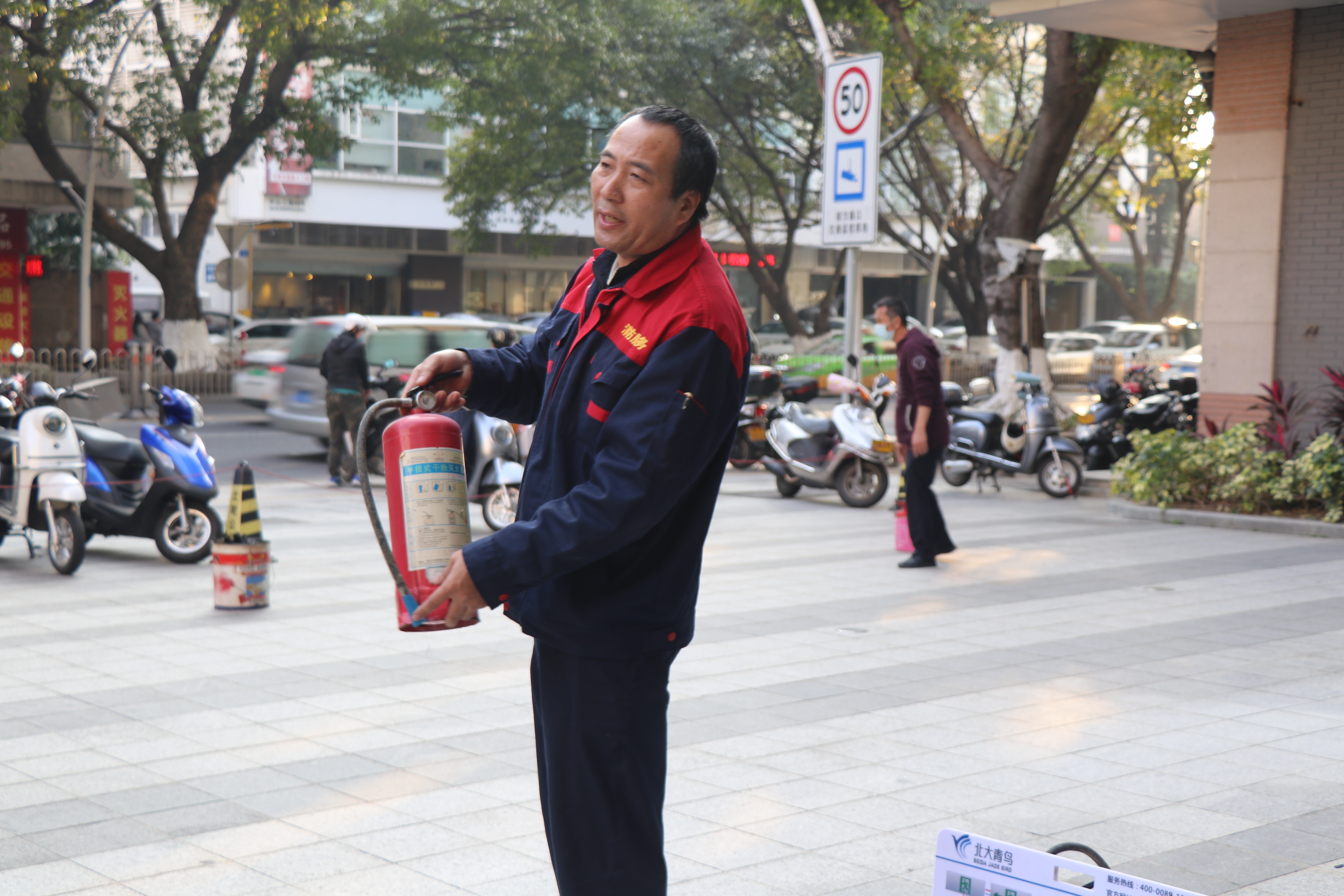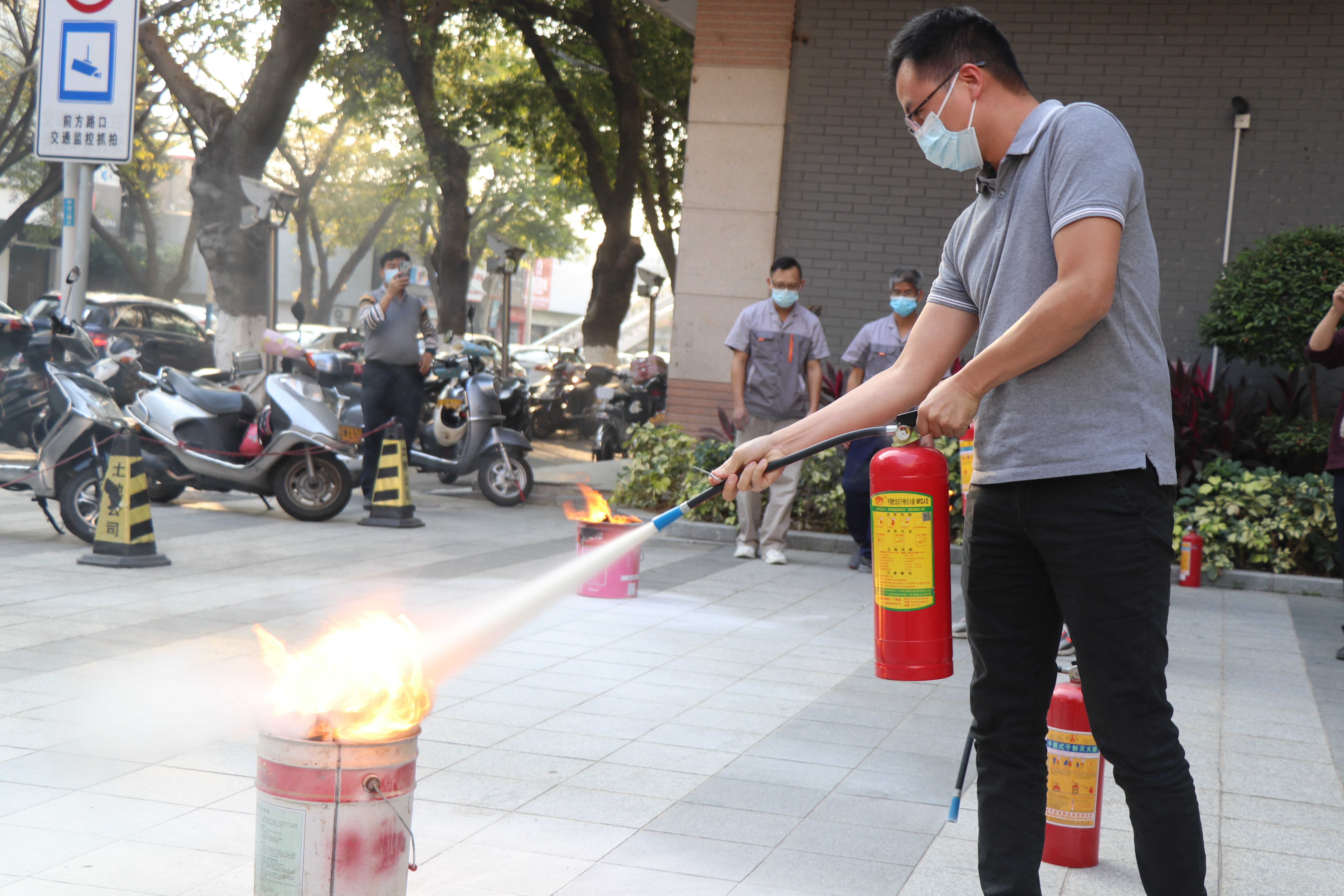 本次的消防演練除了疏散實操以外,還結合了消防安全理論知識以及消防設施設備實操。消防專職人員為大家講述遇到真警情時各類消防設施設備的正確操作,并且組織全體人員進行干粉滅火器的操作使用學習,讓人們更加親身體會到消防技能學習的重要性。