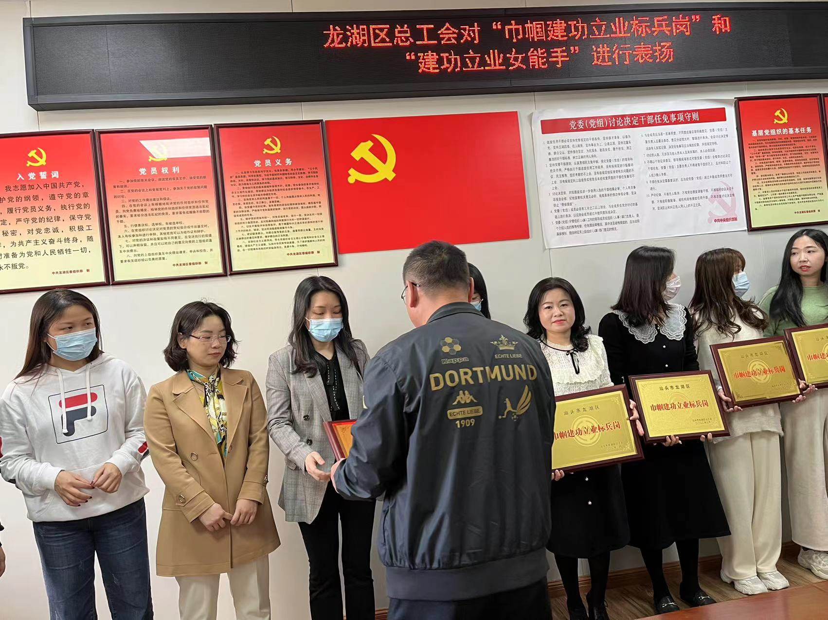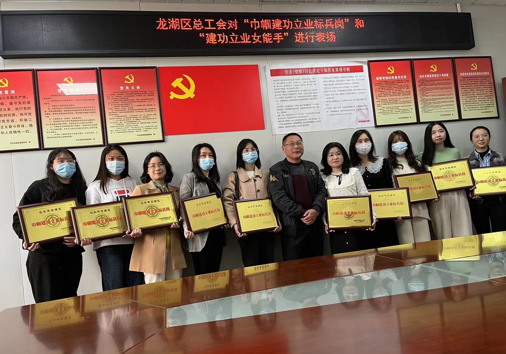 2022年3月7日,汕頭市龍湖區(qū)總工會(huì)對(duì)被評(píng)為“巾幗建功立業(yè)標(biāo)兵崗”和“建功立業(yè)女能手”的先進(jìn)女職工集體和個(gè)人進(jìn)行表揚(yáng),區(qū)人大副主任、總工會(huì)主席文琴,區(qū)總工會(huì)副主席張海巖為先進(jìn)集體和個(gè)人頒發(fā)獎(jiǎng)牌和獎(jiǎng)狀。文琴對(duì)各獲評(píng)集體和個(gè)人的工作表示肯定,希望受到表揚(yáng)的集體和個(gè)人珍惜榮譽(yù),繼續(xù)發(fā)揚(yáng)愛崗敬業(yè)、勤于創(chuàng)造、甘于奉獻(xiàn)、爭創(chuàng)一流的精神,帶動(dòng)身邊更多人為新時(shí)代經(jīng)濟(jì)特區(qū)建設(shè)作出貢獻(xiàn)。