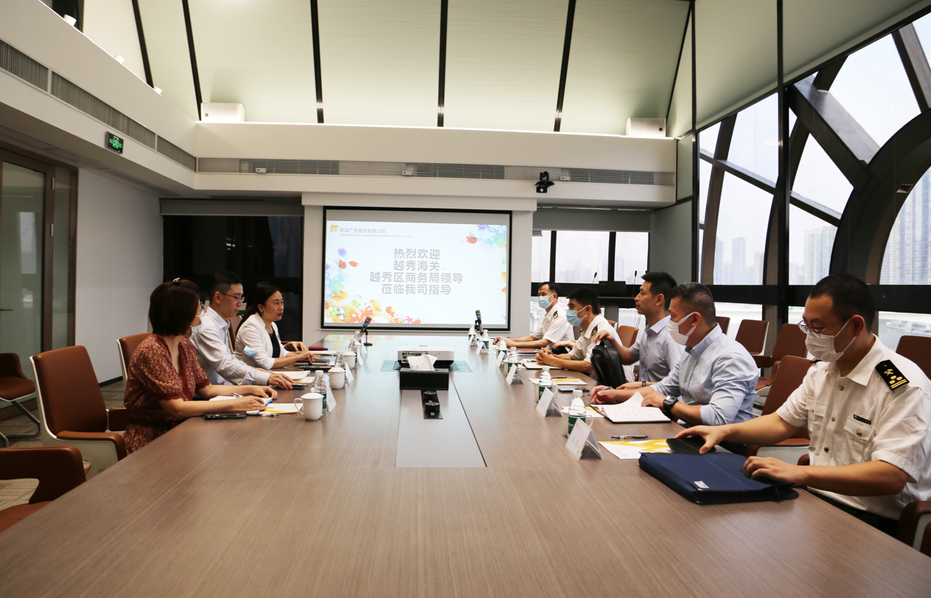 2022年5月26日,越秀海關(guān)關(guān)長(zhǎng)梁惠其、副關(guān)長(zhǎng)王磊、越秀區(qū)商務(wù)局余偉副局長(zhǎng)、四級(jí)調(diào)研員彭文超一行6位領(lǐng)導(dǎo)到訪華潤(rùn)廣東醫(yī)藥有限公司(以下簡(jiǎn)稱:華潤(rùn)廣東醫(yī)藥),對(duì)企業(yè)業(yè)務(wù)運(yùn)營(yíng)、進(jìn)口業(yè)務(wù)發(fā)展,政府企業(yè)扶持政策等展開調(diào)研交流。華潤(rùn)醫(yī)藥商業(yè)華南區(qū)域、華潤(rùn)廣東醫(yī)藥總經(jīng)理霍佩瓊,國(guó)際業(yè)務(wù)部分管領(lǐng)導(dǎo),進(jìn)口業(yè)務(wù)等相關(guān)人員共同參與。